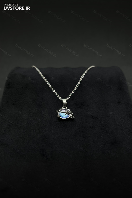 گردنبند مینی جواهری زحل آبی رنگ ثابت
